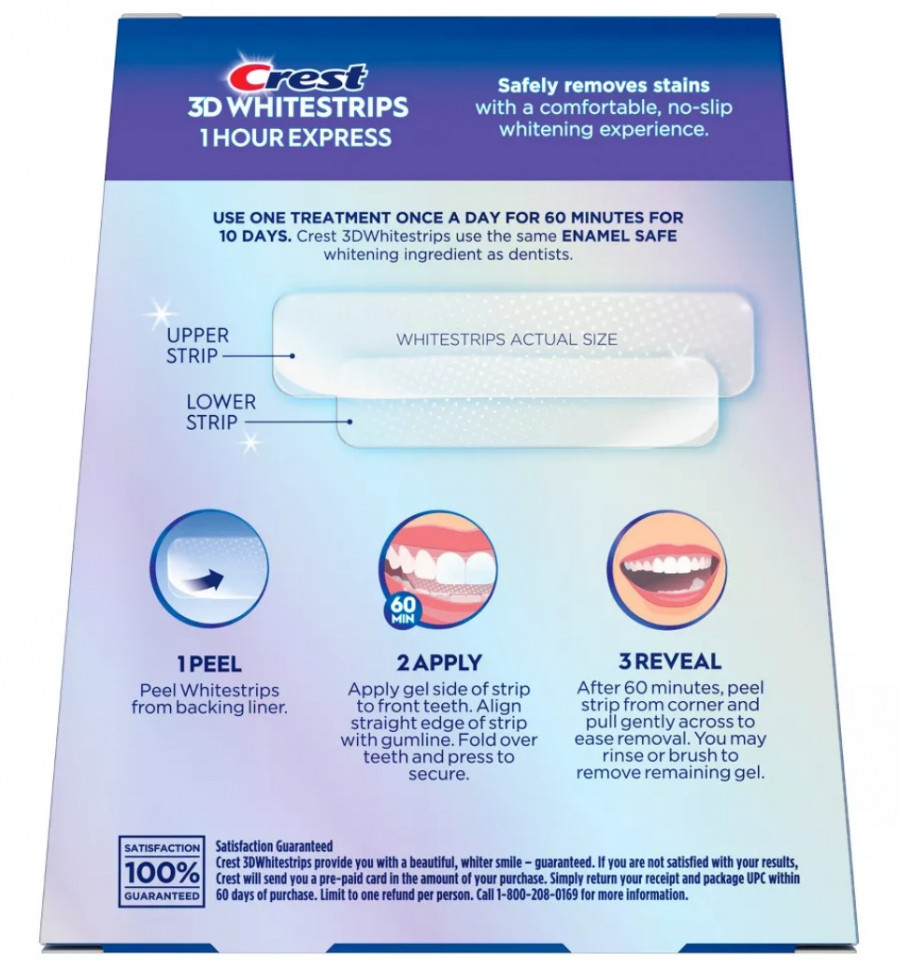 A Crest 3D White 1-hour EXPRESS fehérítő matricákkal ragyogó fehér mosolyt érhet el már 10 napi fehérítést követően.